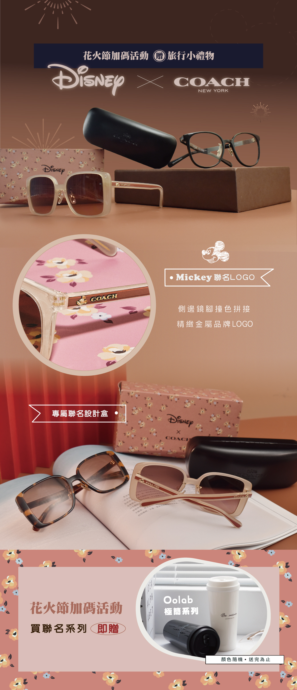 每款鏡框側邊鑲嵌精緻的燙金米奇及品牌logo