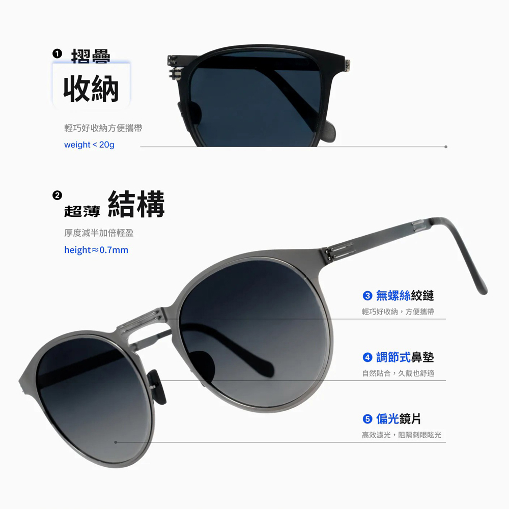 鏡架:301不鏽鋼、橡膠、金屬裝飾